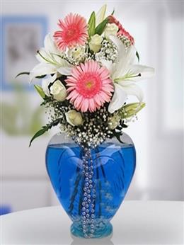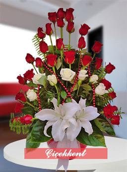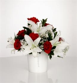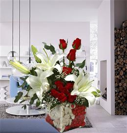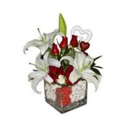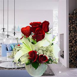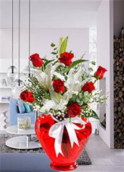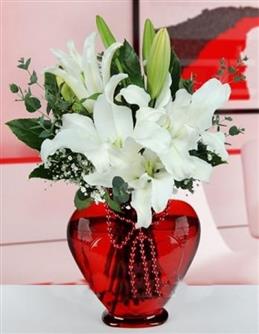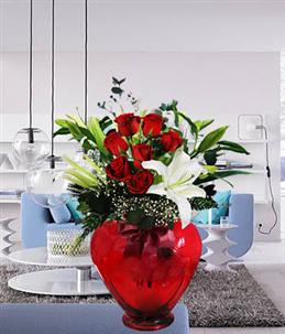 Kalp Vazoda Kırmızıgül ve Lilyumlar
