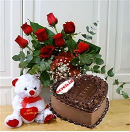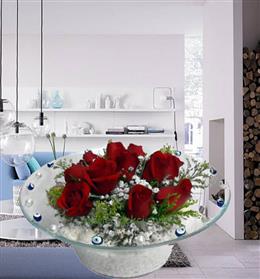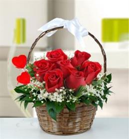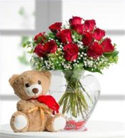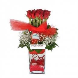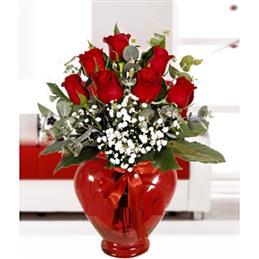 Yüreğir Çiçekçilik Kalp Vazo da 7 Adet Kırmızı Gül
