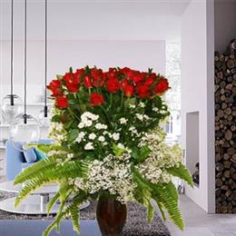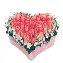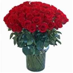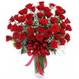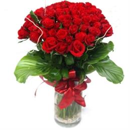 Kalp Vazo da 51 Adet Kırmızı Gül