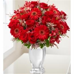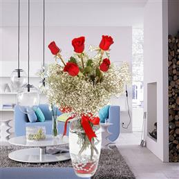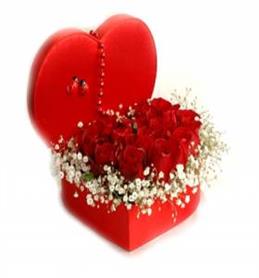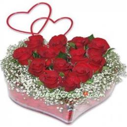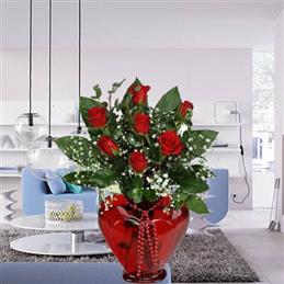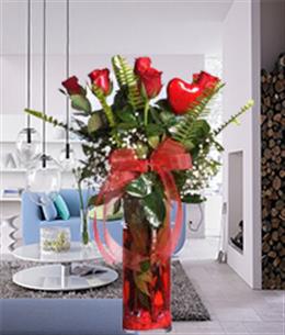 Kırmızı Kalp Vazoda Güller