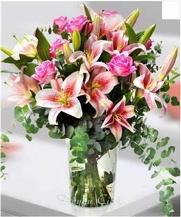 Pembe Gül ve Lilyumlar