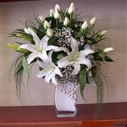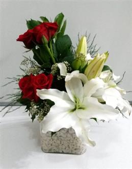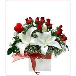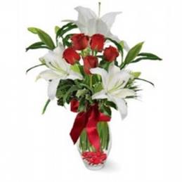 Yüreğir Çiçekçilik Vazoda 3 Gül ve lilyum